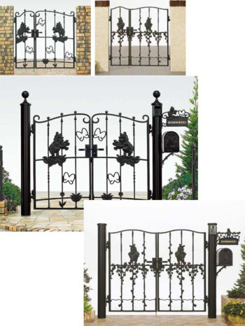 ディズニーシリーズのエクステリアはたくさんの種類があり、それぞれが受注生産となっています。今回工事させて頂いた門扉やフェンスの他にもいろんな種類があります。全てではないですが少しご紹介します。
