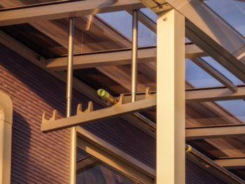 桁の取付をします。積雪50cm対応の部材なので逞しさがあります。