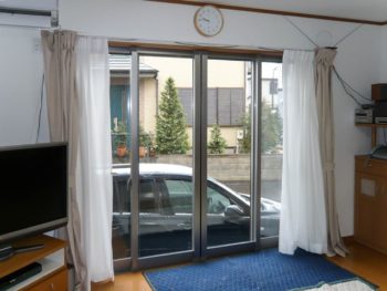 掃き出し窓ともに、取付スペースは十分ありますので、窓枠の中にピッタリ収まります。