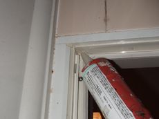 吊元の上桟と縦框が裂けて外れてしまっています。ビスが効いていない状態。これでは隙間から、脱衣場へと水漏れしてしまいますね。