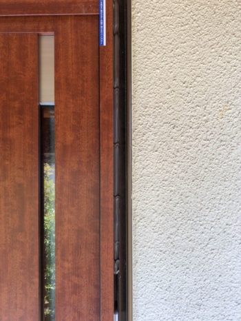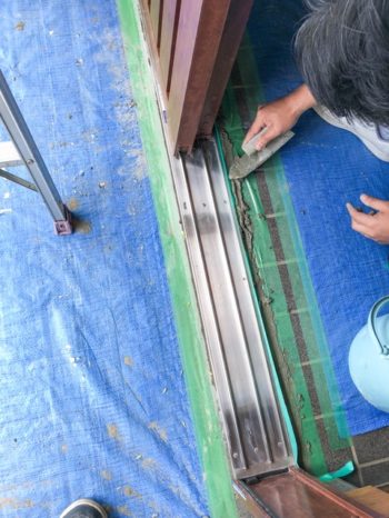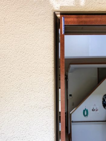 外部。下枠の正面下は今回モルタルで仕上げましたが、通常はシール打ちします。