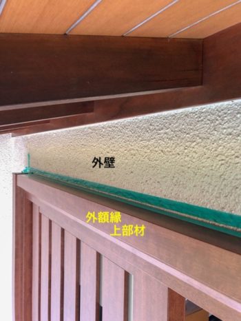 外部、上部材。外額縁と外壁の取り合いにはシールでの処理になります。