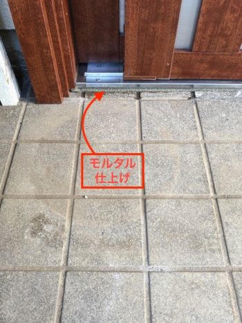 玄関内部タイルとの間にもモルタルを詰めています。段差が出来ないように仕上げます。