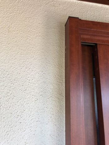 左側が室内側です。たて枠を見た所。内外化粧の額縁はこのように被せて取り付けします。