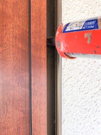 新しい枠と既存枠に隙間ができるので、変成のコーキングでシールを打ちます。