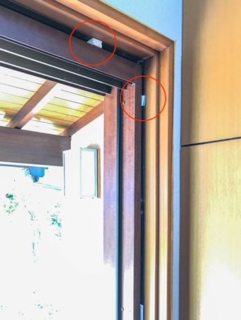 室内側から見たところ。赤丸のところにはスペーサーが見えますね。
