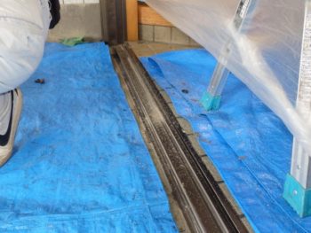 下枠のレールの立ち上がり部分を無くすため、できる限り落としていきます。