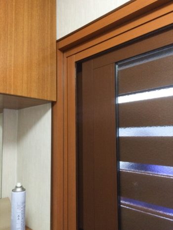 今回は、玄関リフォームの他に、同時進行で浴室の出入り口ドアもカバー工法で交換させていただきました。