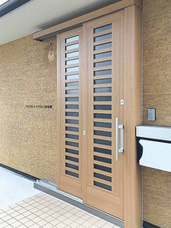 戸塚区団地集会場 かんたんドアリモ 開きドアからアウトセット玄関引戸交換
