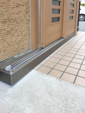 こちらは、下枠の立ち上がりが大きいためモルタルを充填した後に、標準施工にはないアルミの幅木材をうまく加工して取り付けてみました。